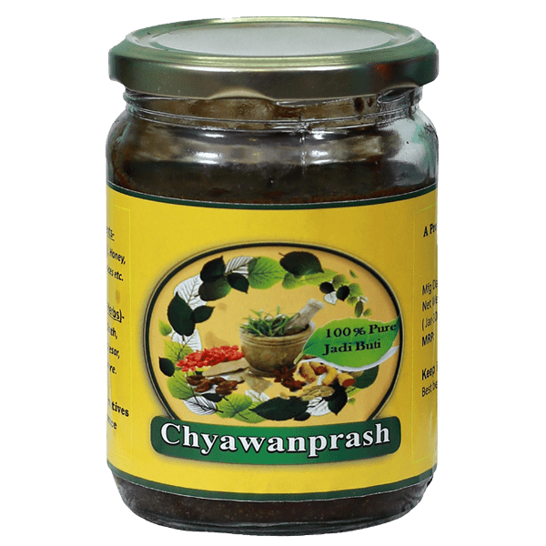 Our Chawanprash is prepared from 31 Herbs(Jadibooti) Like Giloy, Ashwaghandha, Dashmool, Hari-Taki, Nag-Kesar & Vital Bhasams mixed well with 51 Pure Natural Components Like Fresh Amla, Almonds, Saffron, Honey & Cows Ghee which gives Super Concentrated Blend of Nutrient Rich Herbs & Minerals, which aids in imporving Vilatility & Inner Strength.